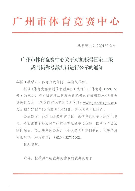 bst365关于对拟获得二级裁判员称号进行公示的通知